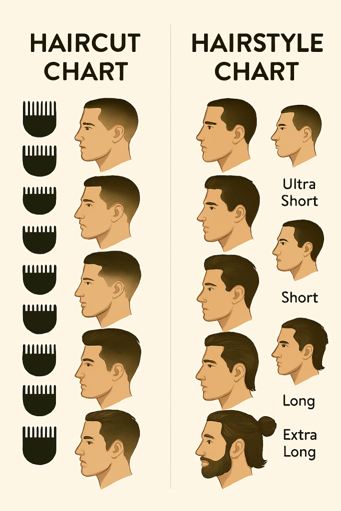 Q1: What’s the difference between haircut and hairstyle charts? Haircut charts focus on clipper sizes and grooming logic; hairstyle charts focus on silhouette and styling.