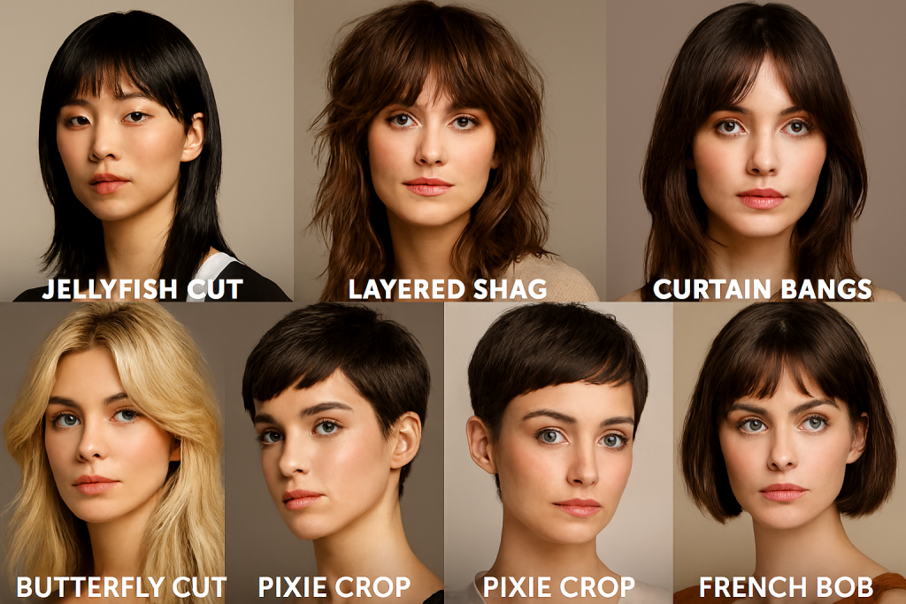 Q1: What’s trending in women’s haircuts this year? Jellyfish cuts, butterfly layers, and curtain bangs are top picks for mapped silhouette drama.
